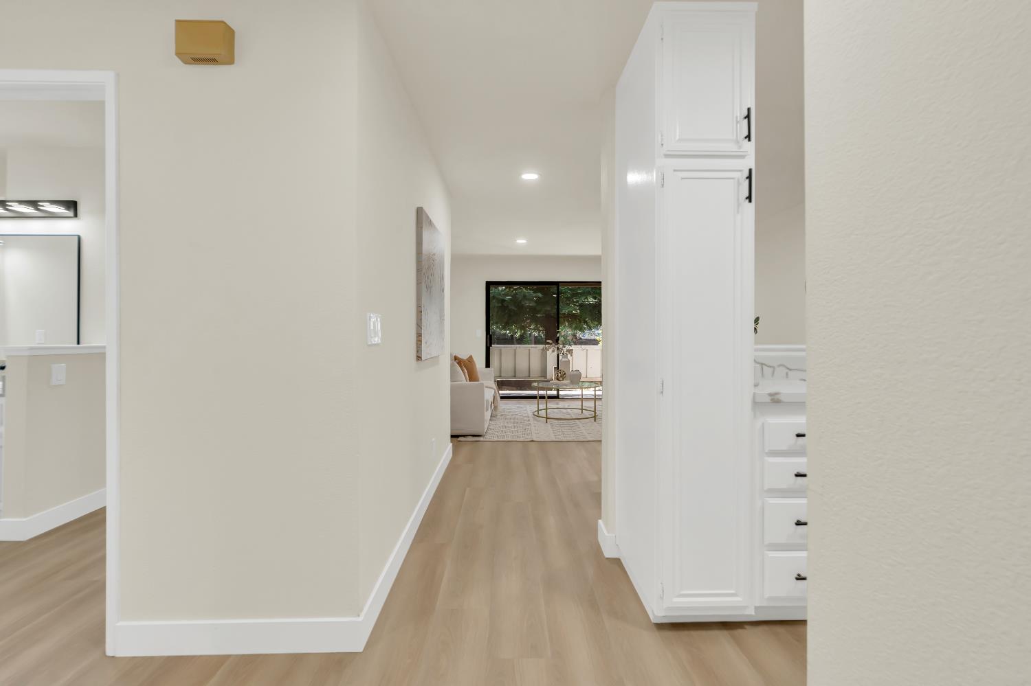 Welcome to 194 Farm Lane, a beautifully renovated, move-in ready lower/ground-level condo in the desirable Country Village community of Martinez. Offering 939 square feet, this 2-bedroom, 2-bath home combines thoughtful updates with comfortable everyday living. Step inside to an inviting open layout featuring warm-toned luxury vinyl tile flooring, fresh interior paint, and recessed lighting throughout. The living and dining areas connect seamlessly, creating a natural flow for both relaxing and entertaining. The updated kitchen showcases stainless steel appliances, quartz countertops, and ample cabinetry for storage. Both bathrooms have been refreshed with quartz counters and modern finishes. The primary suite offers a peaceful retreat with its own ensuite bathroom featuring a dual sink vanity and separate shower area. A sliding glass door leads to a private patio surrounded by mature greenery an ideal spot for morning coffee or unwinding at the end of the day. The second bedroom is versatile and well-suited for guests, a home office, or additional living space. Additional highlights include in-unit laundry, a dedicated carport space with storage cabinets, and ample guest parking. Residents enjoy access to community amenities including walking paths, pool and spa, tennis courts, and BBQ areas. Conveniently located near shopping, dining, public transportation, and major commuter routes. A wonderful opportunity to own in Country Village.